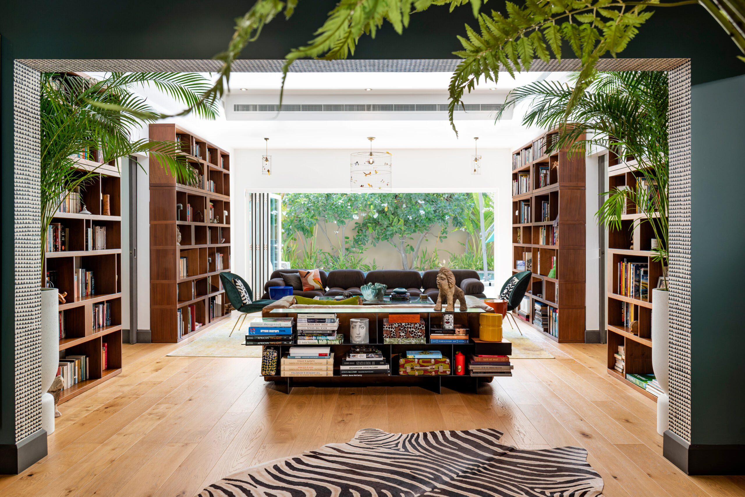 The same philosophy shapes her use of greenery. “Perhaps living in the desert has made me crave green,” she muses, echoing her admiration for Geoffrey Bawa’s tropical brutalism, where raw form and natural lushness coexist.