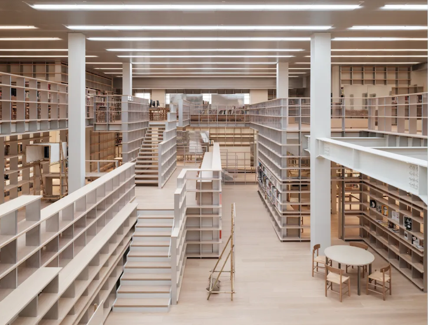 Sakamoto’s architectural approach dissolves the boundary between reading and movement. The library is organised along a slow, ascending ramp — a continuous path where shelving merges with structure, creating a fluid landscape that encourages visitors to drift, linger, and explore. More than 10,000 books are now publicly accessible, selected from a 50,000-item collection spanning visual culture, architecture, design, and social thought.