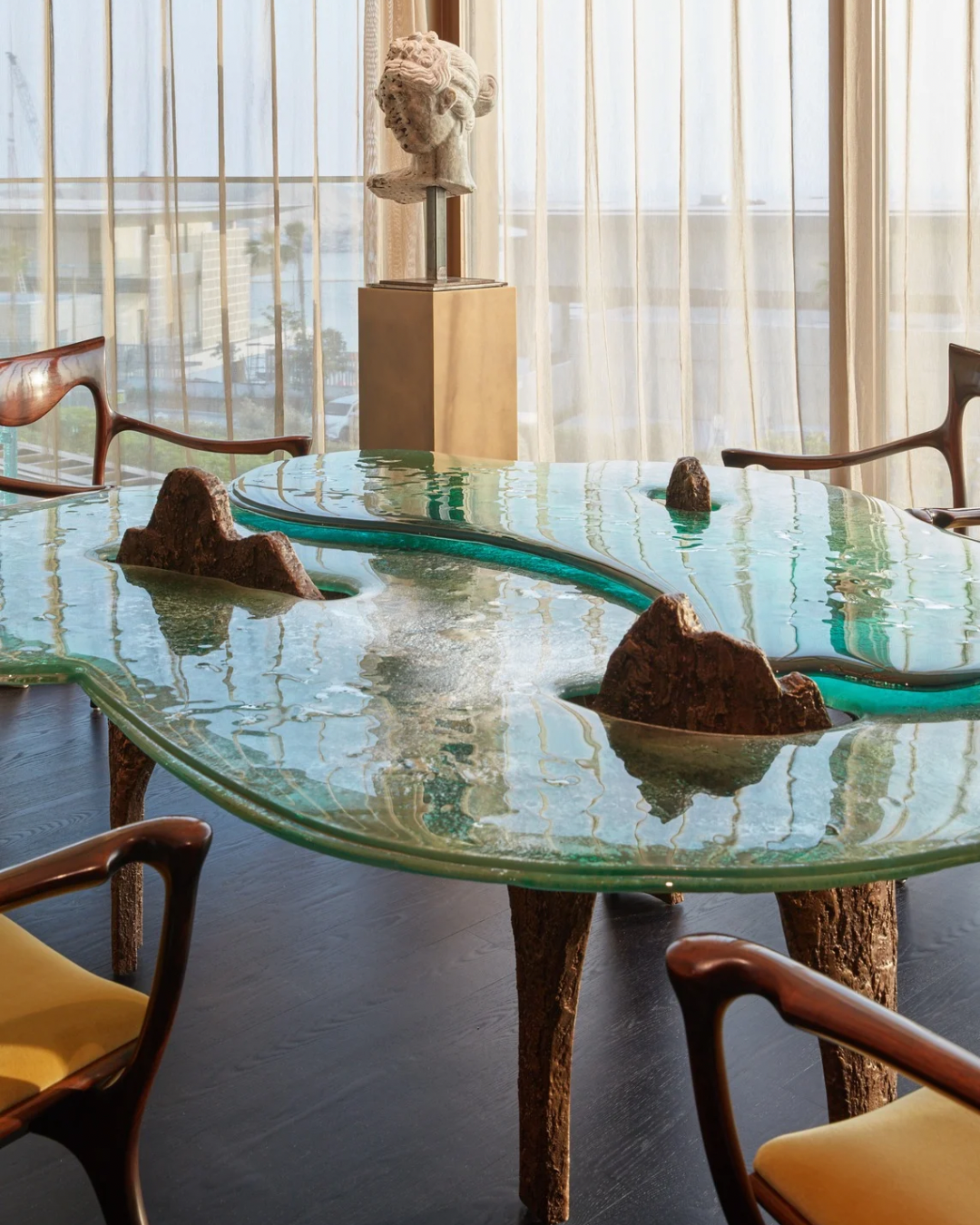 Rather than a linear survey, Yashar proposes a constellation of designers – from vintage icons to contemporary studios – whose works together form a nuanced meditation on material culture. Many appear briefly like characters in a broader narrative: Osanna Visconti’s poetic bronze casting, Christian Pellizzari’s chromatic Murano glass, Allegra Hicks’ sculptural textiles, Maximilian Marchesani’s luminous geometries, Odd Matter’s speculative surfaces, and StudioDanielK’s jewellerly-inspired forms. Each offers its own reading of memory, process, and transformation.