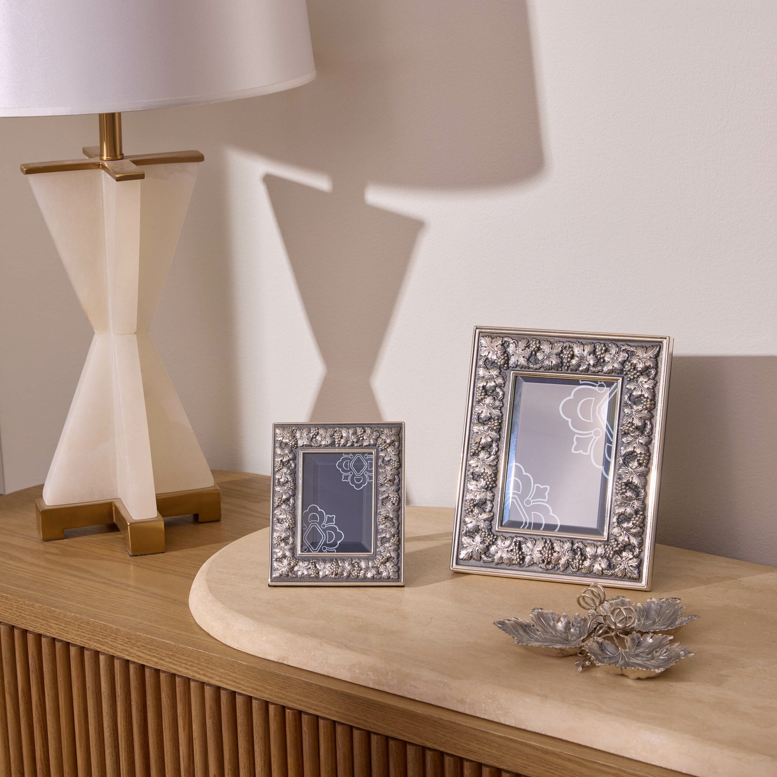 The collections draw on nature and history — leaves that seem lifted from a Renaissance sketchbook, marine motifs rendered with sculptural precision, surfaces textured like fine fabric. Yet their presence is resolutely contemporary. In a minimalist interior, a Buccellati bowl becomes a focal point; on a festive table, it anchors the choreography of glass, porcelain, and linen.